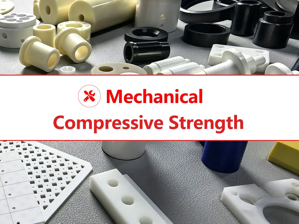 يعرض الرسم البياني أدناه قوة الضغط لمختلف المواد الهندسية — بدءًا من السيراميك فائق الصلابة وحتى البلاستيك الصناعي الشائع — مرتبة حسب الترتيب التنازلي.