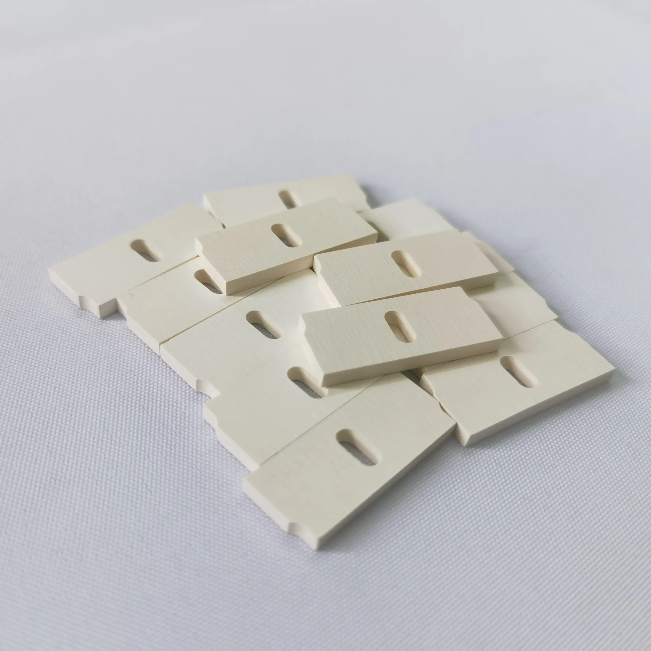 氧化铝陶瓷挡片的主要优势在于具备优异的耐磨、耐高温和耐腐蚀性能,同时拥有稳定的绝缘效果和较高的尺寸精度。即使在长期高频摩擦或复杂环境下使用,依然能够保持结构稳定,使用寿命更长。特别适用于机械限位、高温隔热、自动化定位、电子绝缘以及设备耐磨保护等应用场景,是替代金属和塑料挡片的理想选择。