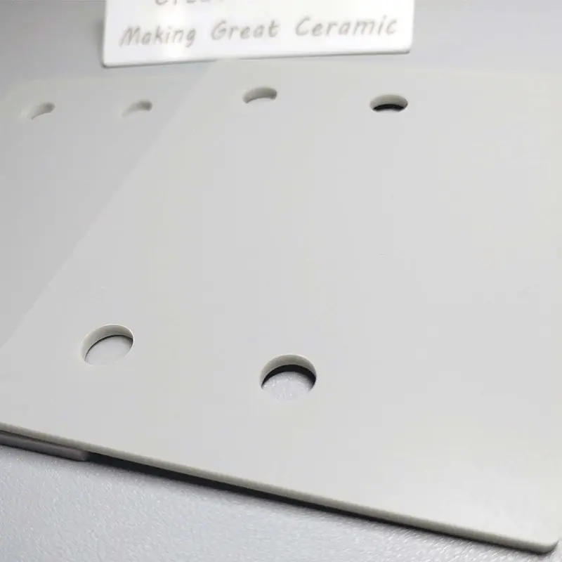 氮化铝陶瓷板板面平整、孔位精确、加工尺寸稳定,适合电子级精密装配使用。其核心优势在于导热快、绝缘强、耐高温、热膨胀匹配性好,能够有效降低器件工作温升,提升系统稳定性与封装可靠性。同时具备良好的机械强度和耐腐蚀性能,适用于功率模块、半导体、通信设备及工业控制等高要求散热领域